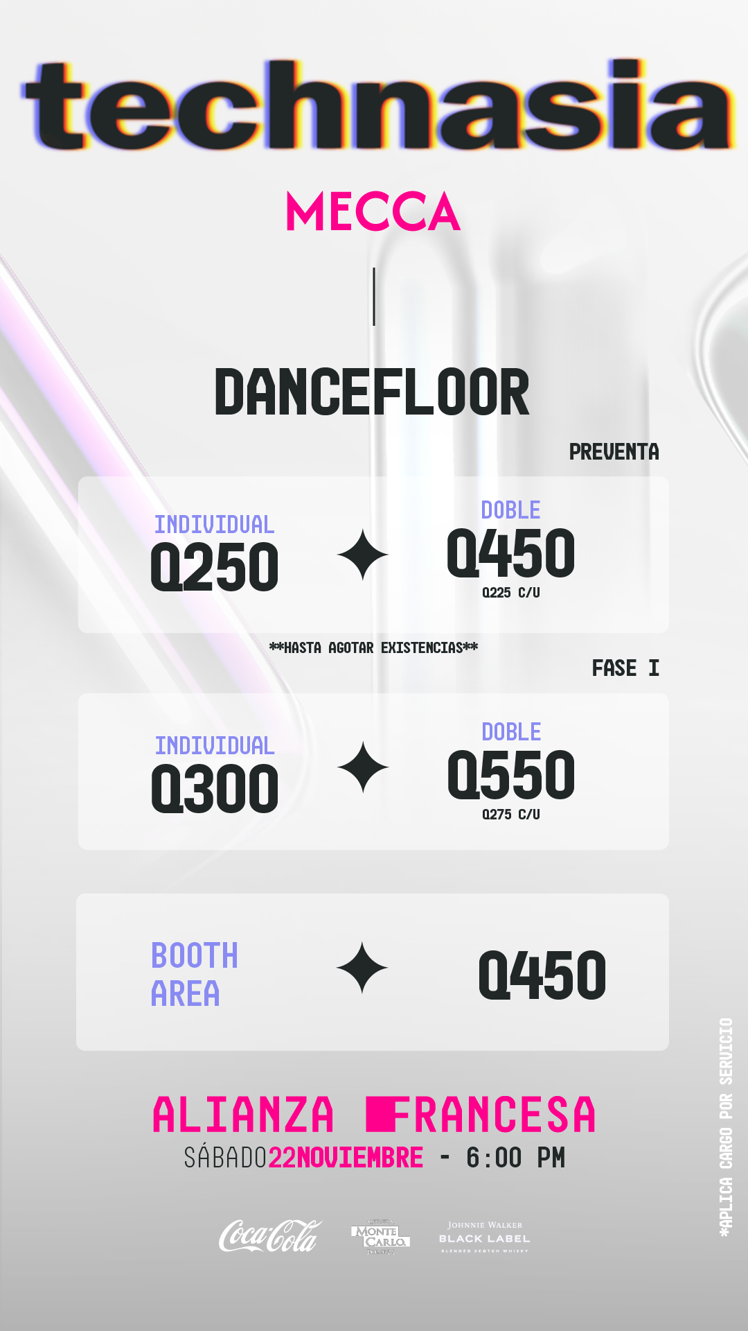 Technasia, el icónico DJ y productor francés que fusiona magistralmente el groove del house con la energía del techno, regresa a Guatemala para hacer vibrar el dancefloor con su inconfundible sonido. Con una trayectoria que abarca más de dos décadas, éxitos como “I Am Somebody”, “Suga” y “Heart of Flesh” han marcado generaciones y lo han llevado a escenarios legendarios como Ultra Music Festival y Resistance.